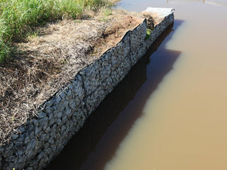 固濱籠廣泛應(yīng)用在河道工程,主要有加固河堤和引導(dǎo)水流。加固河堤的鉛絲石籠網(wǎng)箱,通常在堤堰內(nèi)側(cè),主要是應(yīng)用在河水流速對(duì)比湍急的當(dāng)?shù)兀铀疀_刷固濱籠,而非直接沖刷河堤,這樣減輕對(duì)河堤的危害。